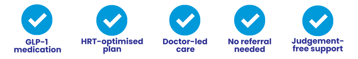 At The Menopause Hub, we specialise in the intersection between menopause and metabolic health. We assess and optimise your hormonal health alongside prescribing weight loss therapy, helping to protect muscle mass, improve metabolic markers, and support long-term results. Critically, we understand how HRT can interact with and enhance weight loss medications — and we manage both.